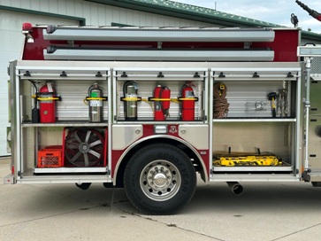 ![]() Delivered 2025-04-08 1,500 GPM 1,000 Gallon Tank 6 - Seats / 5 - SCBAs 1,000 feet of 5” Supply Line Pre-connected Hard Suction the front bumper. |